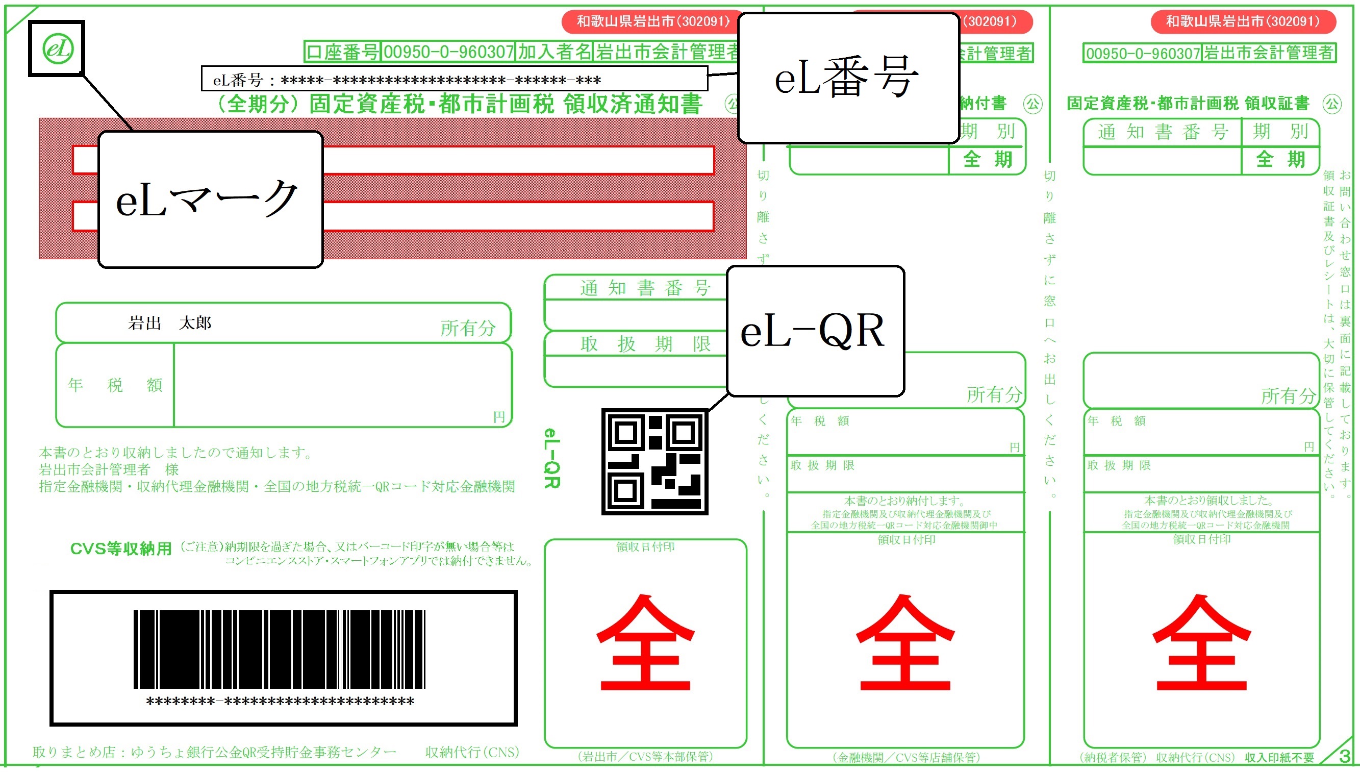 令和5年度から納付書に印刷される「地方税統一QRコード(以下eL-QR)・eL番号」を利用することで、岩出市指定金融機関・収納代理金融機関に加え、「eL-QR」の読み取りに対応したスマートフォン決済アプリや、全国の共通納税対応金融機関で納付が可能になるほか、地方税共同機構が開設した「地方税お支払サイト」によりクレジットカード、インターネットバンキング、口座振替(ダイレクト方式)(期日指定可能)、ペイジー番号発行など、様々な方法での納付が可能になります。